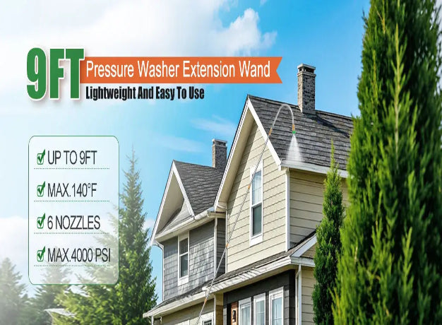 Reach gutters, roofs, and upper walls with ease using this 9FT extension wand.
